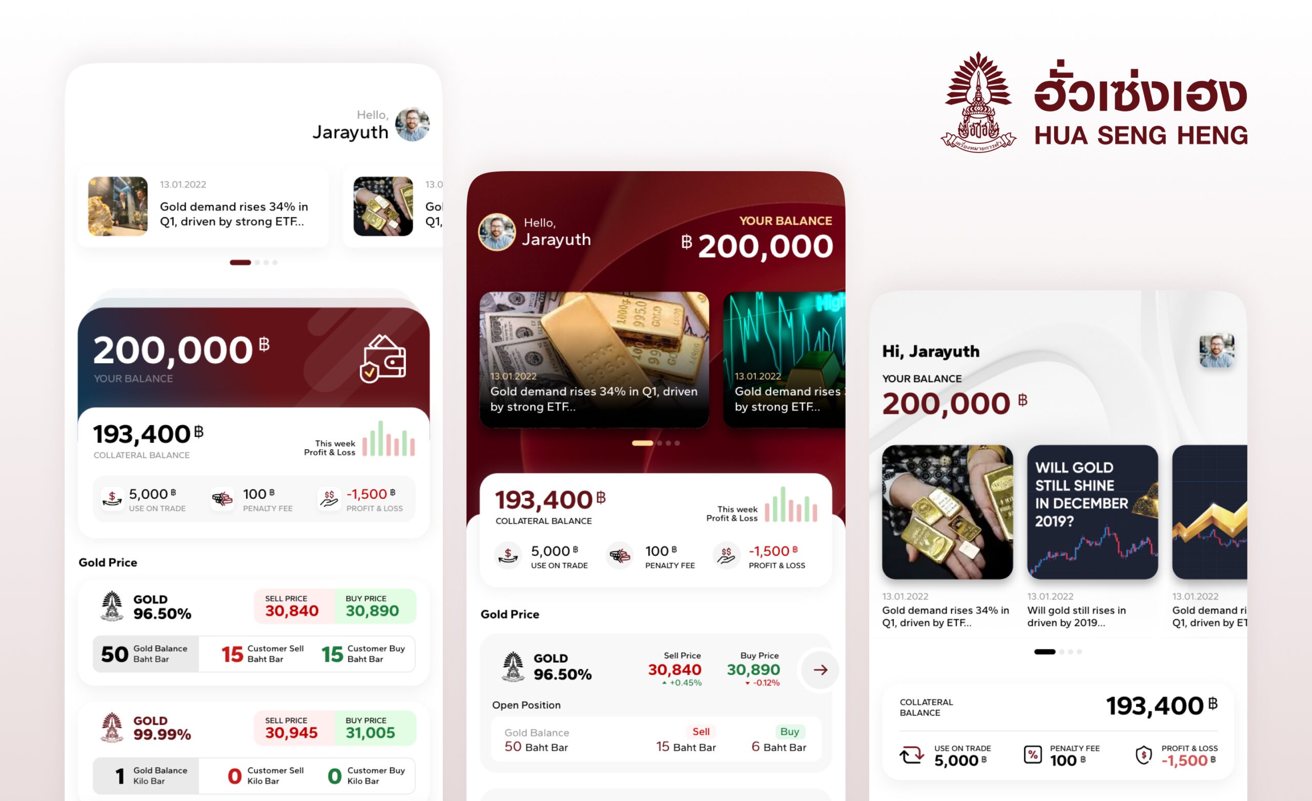 ออกแบบ UI แอปซื้อขายทองคำ บริษัท ฮั่ว เซ่ง เฮง จำกัด